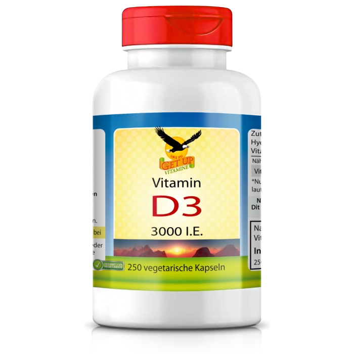 Vitamin D3 oder auch Cholecalciferol genannt, ist die Vitamin D - Form, die unsere Haut aus Cholesterin synthetisiert, wenn sie der Sonne ausgesetzt ist. Die Menge der Produktion des Vitamin D3 ist abhängig vom Klima, der Menge direkter Sonnenstrahlen, der Menge der Hautpigmente und dem Alter. Vitamin D3 ist unerlässlich für den normalen Knochenaufbau und fördert die Aufnahme von Calcium aud der Nahrung, so wird die Menge des gespeicherten Caciums im Körper erhöht.