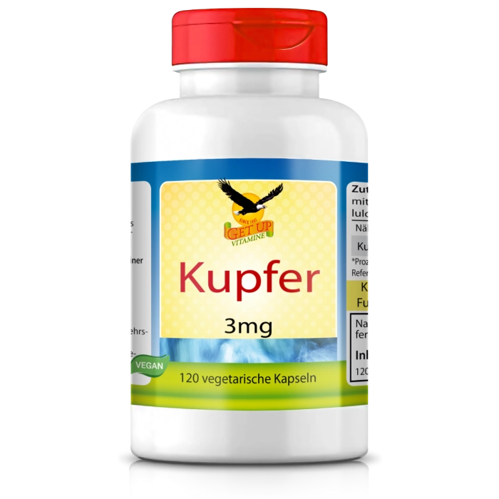 Kupfer ist ein Bestandteil von Enzymen des Aminosäure,- und Eisenstoffwechsels, Kupfer ist an der Bildung von roten Blutkörperchen beteiligt und kann die Eisenaufnahme fördern. Kupfer kann zur Erhaltung des Bindegewebes beitragen, sowie zu einer normalen Pigmentierung der Haare. Kupfer unterstützt den Schutz unserer Zellen vor oxidativem Stress.